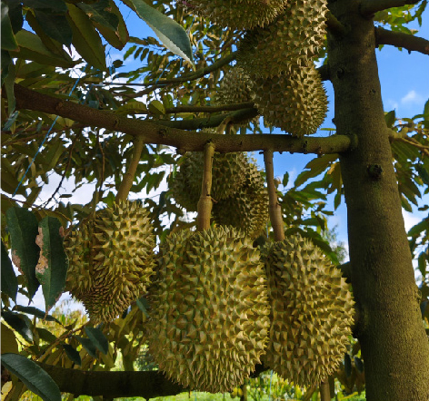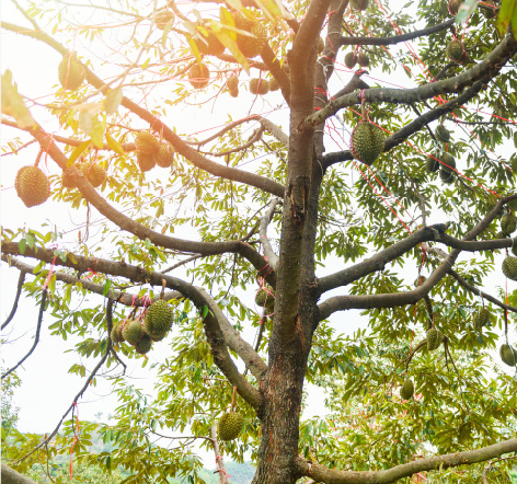 项目在柬埔寨马德望省桑洛县榴莲基地,热带季风带上的高品质榴莲,主要品种为金枕头、猫山王和黑刺。